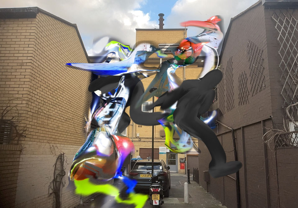 Using augmented reality, I arbitrarily located the digital image in a real place in Peckham Road. What was fascinating was that not only was the touchable experience of the space transformed from images, but the environment itself interacted in some random way with the virtual image. The sound, the weather, the light and the people passing by became part of my work. Finally, the original space was recreated through the process of viewing by the audience in the form of a video.
